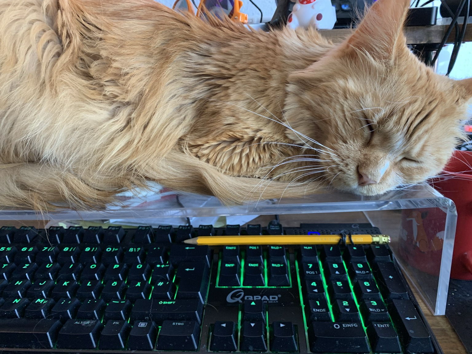 Triss schläft über meiner Tastatur.