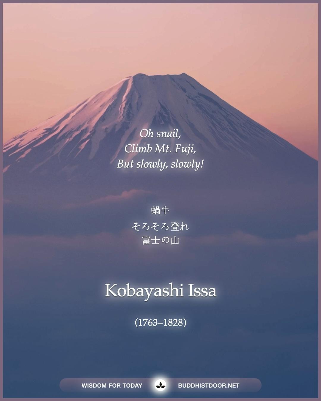 ✨ Oh snail, / Climb Mt. Fuji, / But slowly, slowly! — Kobayashi Issa (1763–1828) ✨