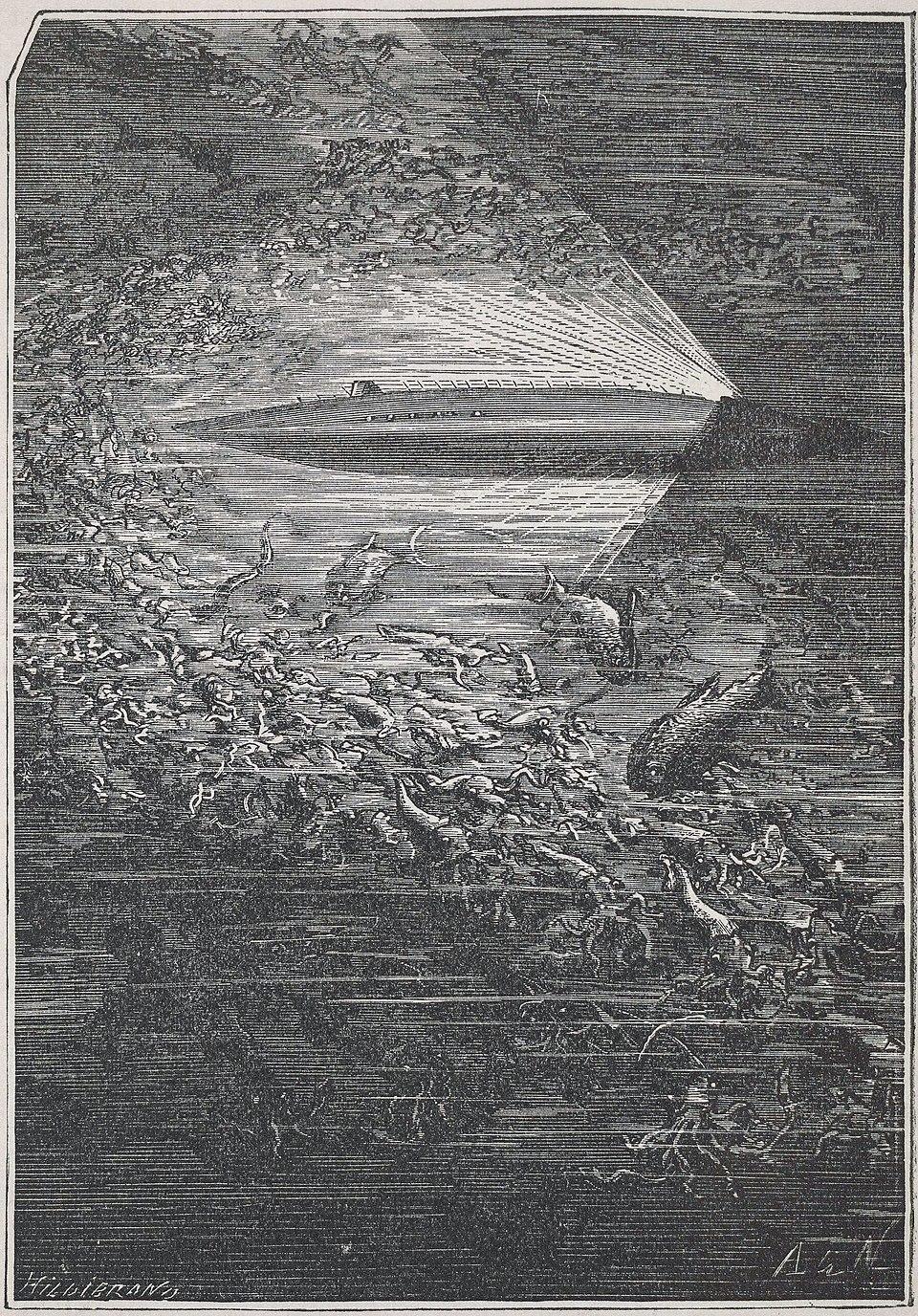 The Nautilus - Illustration by Alphonse Marie Deneuville, for Twenty Thousand Leagues Under the Sea by Jules Verne (1870)