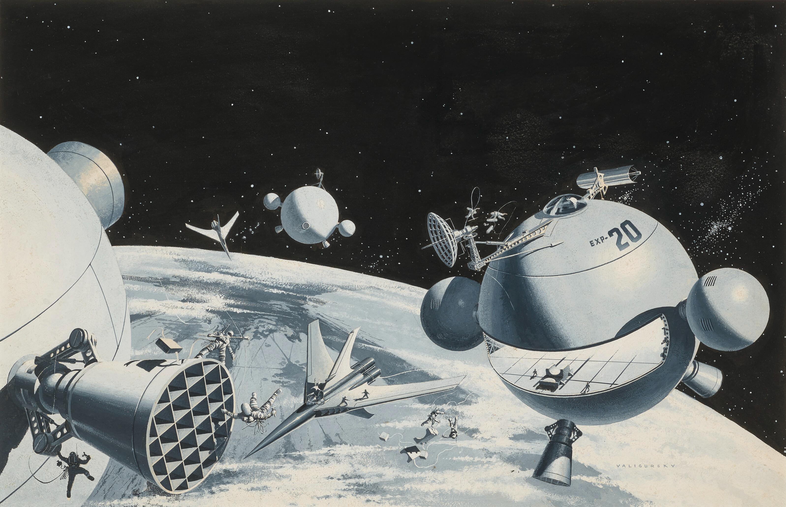 Space Port gouache painted by Edward Valigursky (ca 1956)