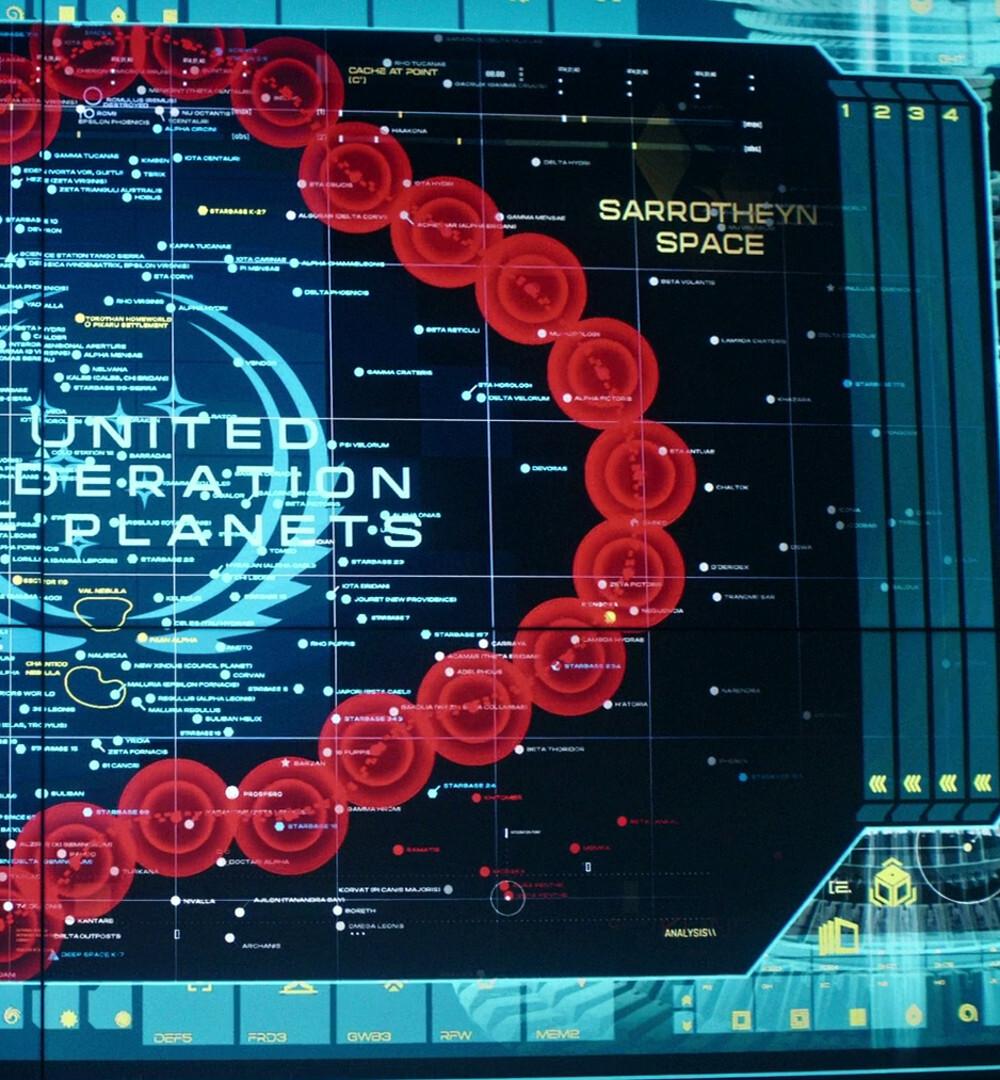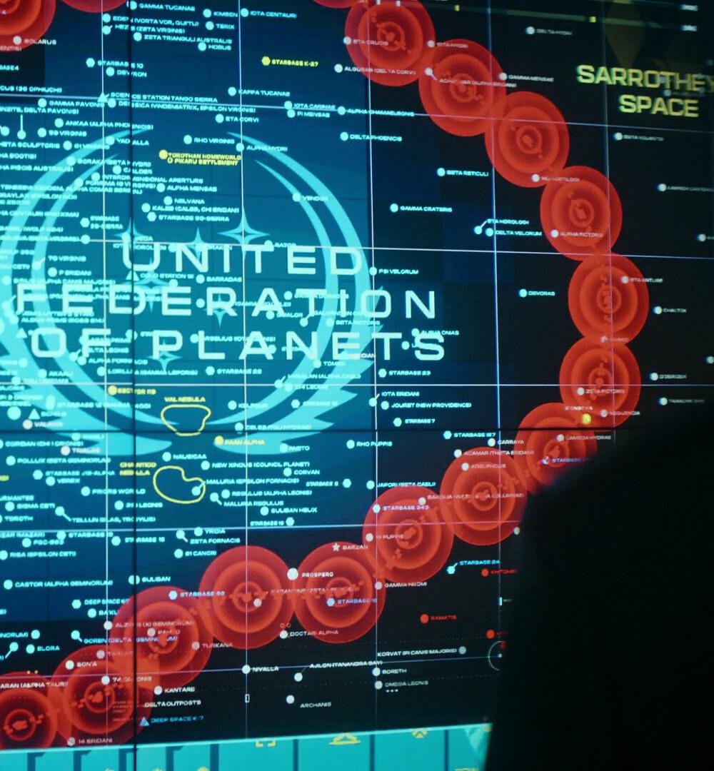 Here are the two best shots we get of the map of Federation space in #StarfleetAcademy's "Rubincon". It's cool to read all the familiar (and new) names and sometimes get the real-life designation of the planets we know from #StarTrek as well. 🧵 1/2